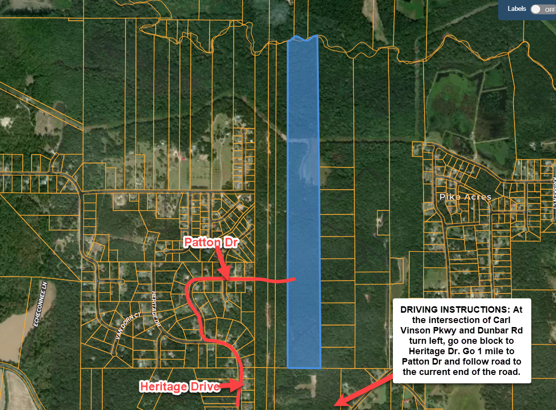 * GPS Coordinates: GPS coordinates: 32.663267, -83.660509 get you to where easement starts at the end of Patton Drive.